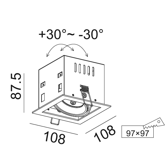 - W: 108 mm.* L: 108 mm. * H: 88 mm.